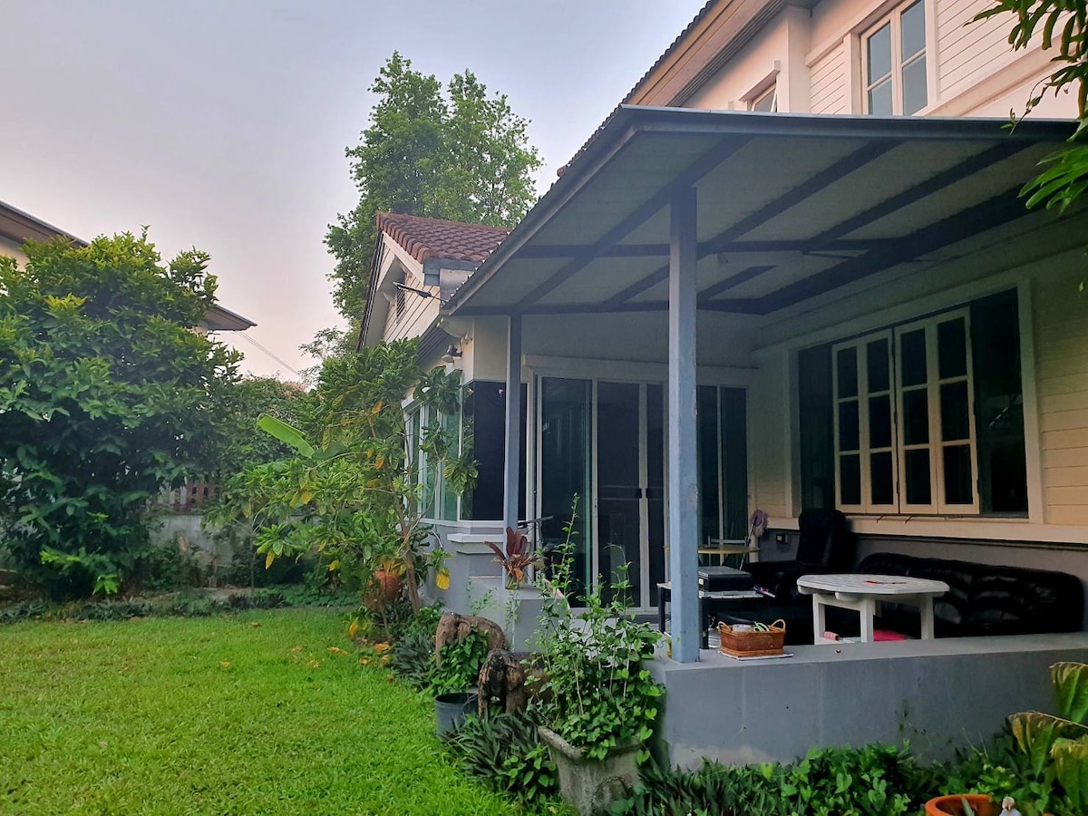 Vakkert, romslig toetasjes hjem i utkanten av Bangkok, med en tennisbane rett overfor huset og et felles svømmebasseng. Nydelig stor plen, perfekt for en familie eller vennersamling. Leveres med et piano og alle praktiske fasiliteter i hjemmet du trenger. 4 soverom 4 bad og kommer med hushjelp. Bare 10-15 minutter til Central Westville og Central Westgate. 30-40 minutter inn til sentrum. Godt vedlikeholdt med en avslappende atmosfære som ditt andre hjem.