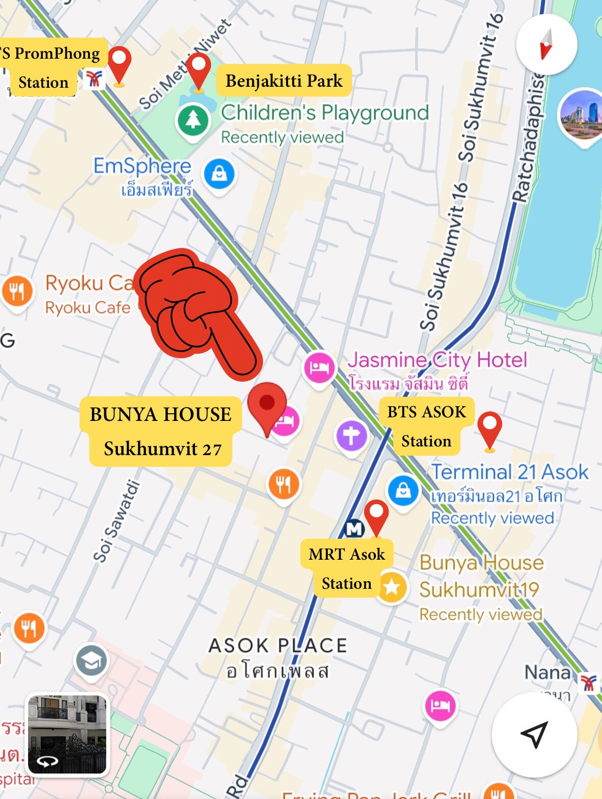 Home Sweet Home :) alle gjester er velkomne. Vi ligger på Sukhumvit 2 Alley og bare 600 meter fra BTS Ploen Chit. Dette området ligger i sentrum av Bangkok. Mange kjøpesentre og restauranter, som – Central Embassy 900 m. – Bumrungrad International Hospital én km. – Terminal 21 1,5 km. – Siam Paragon 2 km. Vi tilbyr god gratis service under et opphold. – daglig frokost – daglig rengjøring – tilgang til Netflix – kull til grillen Ha et fint opphold! Takk Pim (vert) og Poom (medvert)