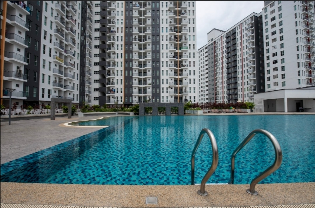 Leilighet med to soverom utstyrt med tre klimaanlegg, høyhastighetsinternett og det siste er vannrenser, ideelt for å ta imot fire gjester. Fredelig beliggenhet i en høy etasje, komplett med basseng og treningssenter. Ligger i nærheten av KLIA lufthavn, Malaysia. Nyt et stressfritt opphold med 24-timers innsjekking, praktisk plassert bare 15 minutter fra T1 eller T2 International Airport. Enten du har en tidlig avreise om morgenen eller en sen ankomst, spar tid og slapp av før flyet. Grab er tilgjengelig 24 timer i døgnet.