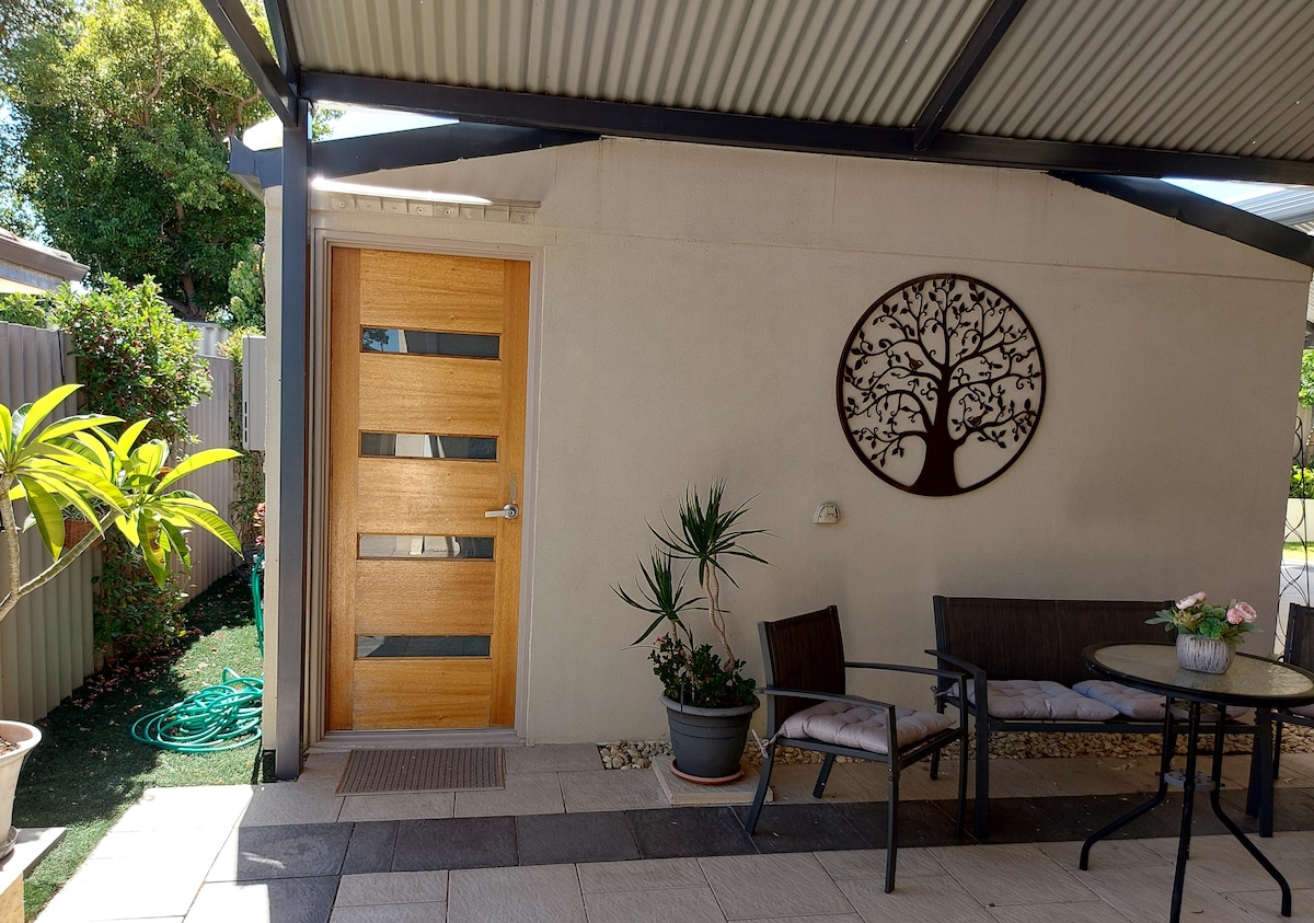 En vakker nybygd, selvstendig, fullt møblert leilighet med egen inngang. Vi befinner oss i en vakker, rolig forstad 20 minutter fra Perth CBD og en kort spasertur til Edith Cowan University, Yellagonga Regional Park og Joondalup CBD. Dette stedet er ideelt for et par eller en liten familie. Maksimal kapasitet er to voksne og to barn. 1 x queensize-seng. Én sovesofa i stuen – perfekt for opptil to barn som deler. Gratis parkering foran eiendommen.
