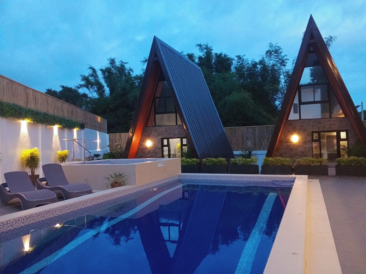 Cozy A-Frame Retreat Stay in our charming A-frame cabins featuring 2 bedrooms with double-sized beds (extra mattress available). Enjoy the comforts of a well-equipped kitchen (stove, mini fridge with freezer, electric kettle, and utensils), a cozy dining and common area, and a terrace with a stunning view of the Sea Of Clouds. Perfect for a relaxing getaway! Max 6 adults.