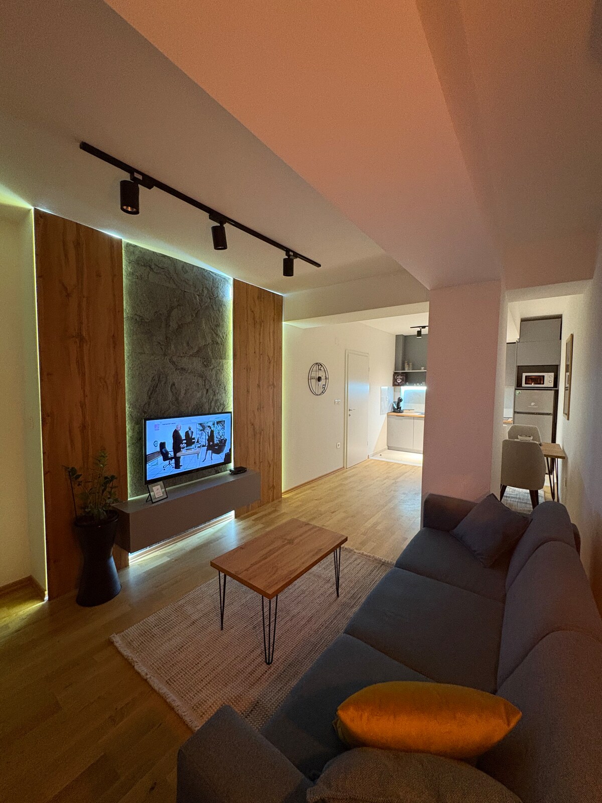 En livlig leilighet i Skopje, med hyggelig natur – to km fra sentrum, 0,5 km fra Skopje City Mall, noen skritt fra bussholdeplass/offentlig transport. Området tilbyr gratis parkering døgnet rundt, utvalg av restauranter, butikker og sykehus (Sistina/Zan Mitrev/September 8th). Smart innsjekking, trådløst nettverk (5 GHz), arbeids-/sminkeområde, TV, utstyrt kjøkken, justerbar vanntemperatur, queen size-seng. Stedet for familier med barn og kjæledyr, par, enslige, folk som jobber hjemmefra og som leter etter en fremstående atmosfære.