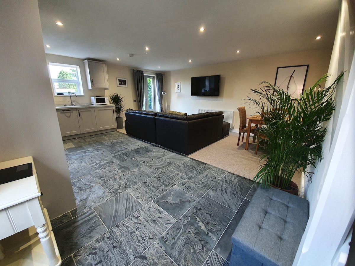 Springwood Cottage har en ideell beliggenhet på et vakkert sted i utkanten av Derbyshire og er helt selvstendig med egen inngang og privat hageområde med parkering utenfor. Hytta er helt nybygd i 2020 og designet etter høyeste standard. Veloppdragne hunder er velkomne. Vi hjelper gjerne to hunder. Be om det hvis du har mer enn to. En luksuriøs super kingsize-seng (6 x 6 fot) med den mest moderne madrassen med minneskum og en komfortabel sovesofa i stuen.