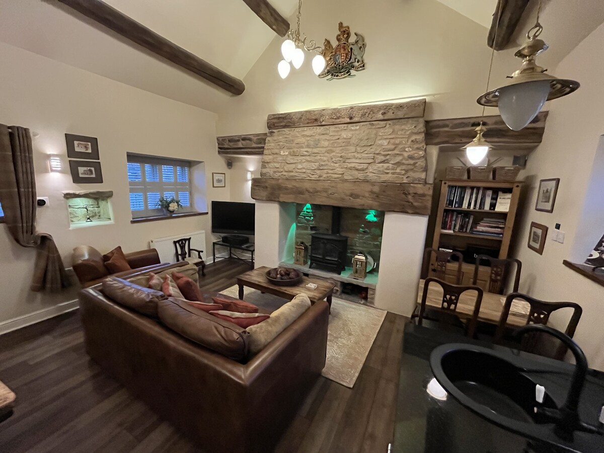 This beautiful detached barn conversion has been charmingly renovated, retaining and working with many original features where possible. Tastefully furnished to a very good standard throughout, the open-plan living space has a small/compact kitchen area with a combi/microwave oven and hob. Its stunning beamed vaulted ceiling creates a warm and cosy social environment.