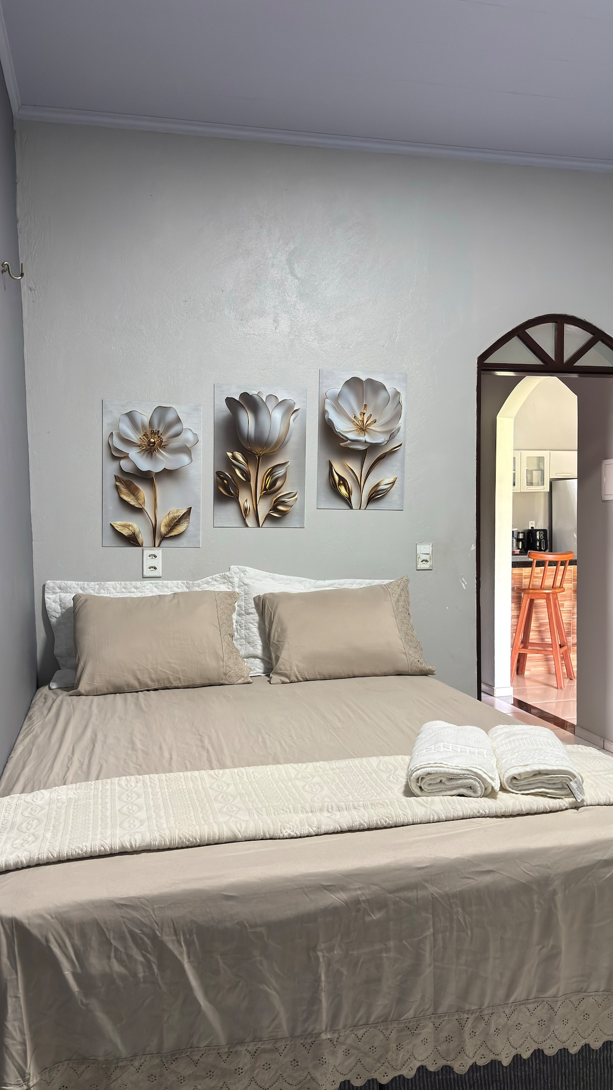 Oppdag Casa Biana, et fristed i Barreirinhas, i det beste lukkede boligkomplekset med tilgang til Preguiça-elven. Det er 4 suiter, 6 bad, fullt utstyrt kjøkken, svømmebasseng, grill, TV i alle rom og et klimatisert rom. Det tilbyr den perfekte rammen for lykk lykkelige øyeblikk med familie eller venner. Inkluderer bærbar barneseng og barnestol. I nærheten av en privat strand og 7 minutter fra sentrum, er huset vårt den ideelle basen for å utforske de lokale sjarmer og Lençóis Maranhenses. Opplev magien!