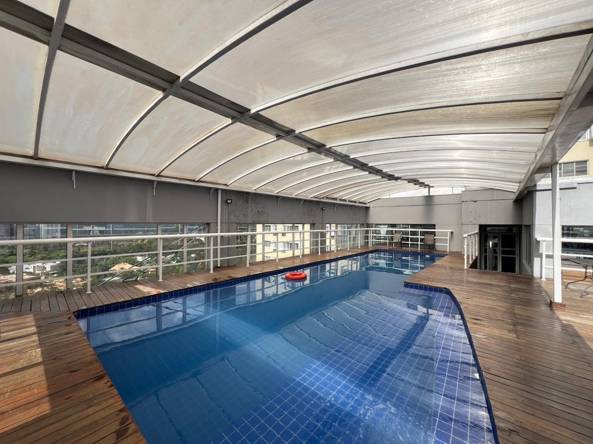 Dette er et veldig spesielt sted, som ligger i hovedgaten i området, i nærheten av alt, banker, apotek, restauranter, tre store kjøpesentre (Iguatemi, Tamboré og Alphashopping, sistnevnte ligger på den andre siden av gaten) et kjøpesenter med utallige tjenester og butikker. Det har også et oppvarmet basseng og et treningsstudio som gir følelsen av ro i et hjem og komforten til et hotell.