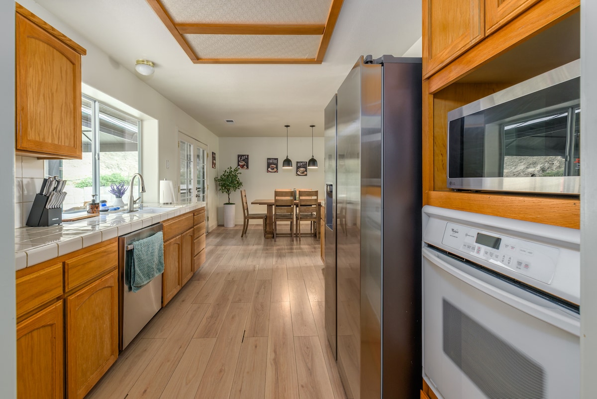 – To soverom, én badhytte med spillrom i familierommet. – sovesofa i queen-størrelse i familierommet – spedbarn- og småbarnsvennlig – én hund per opphold – 20 minutter til Yosemite South Gate-inngangen. – ni minutter til Bass Lake – ti minutter til Oakhurst sentrum – boblebad for 4 personer – fullt inngjerdet terrasse og boblebadområde – Merk: veggen på barnerommet er åpen på toppen, og støy kan høres. ** Vi sørger for ved til peisen vår**