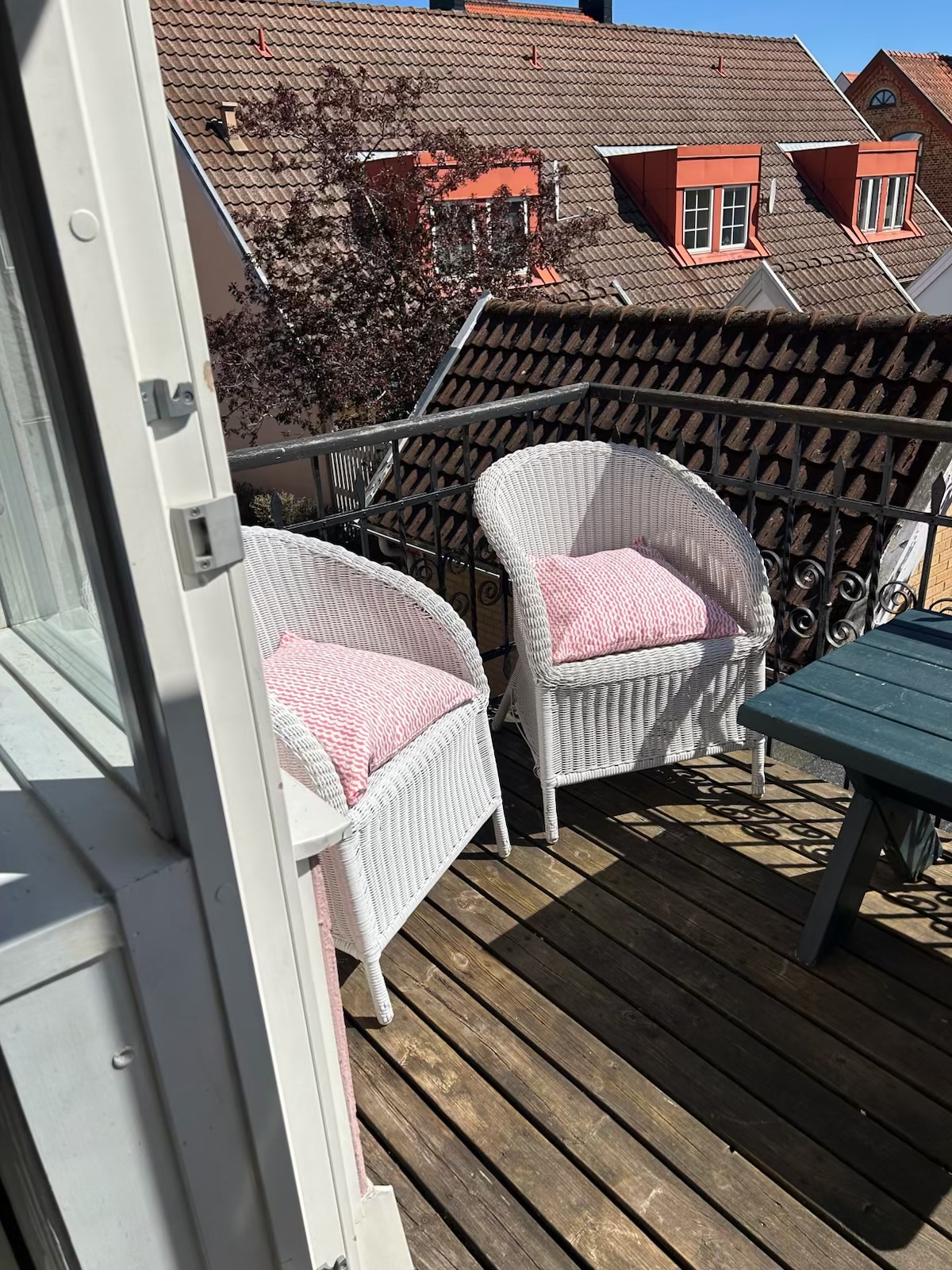Sjarmerende leilighet midt i sentrum av Båstad med dagligvarebutikk, restauranter, marina, strand og sentralbanen innen fem minutters gangavstand. Havutsikt over hustakene fra kjøkkenet, stuen og balkongen. Perfekt for én eller to personer, men fungerer bra for familier på opptil fem personer, med separat innkvartering for tre barn på en koselig hems. Varm velkomst til en ekstremt sentral overnatting i Sveriges sommer- og tennisby nr. 1. ☀️💦