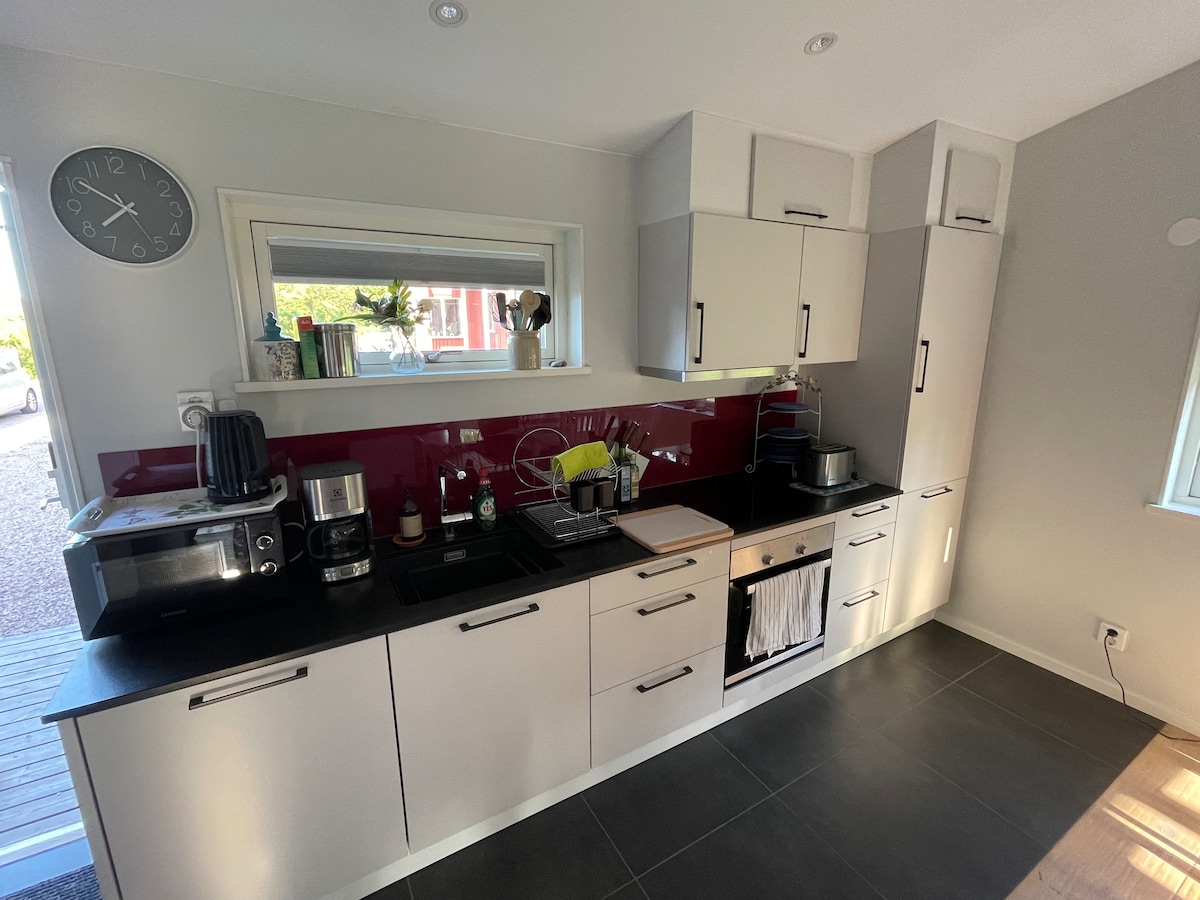 Moderne gjestehus med terrasse og havutsikt i Kattvik/Båstad Stilig, moderne gjestehus i Kattvik – kun 30 m fra sjøen! Perfekt for et par eller en liten familie. Med kjøkken av god kvalitet, terrasse, grill og raskt trådløst nettverk. Stille beliggenhet på Laholmsbucht, nærhet til sykkelstier og natur. Perfekt for syklister, golfere, kjennere og oppdagelsesreisende. Bestill nå og opplev solnedgangen!