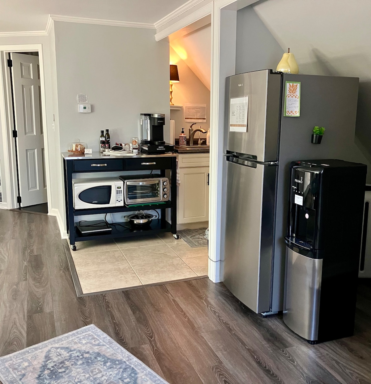 Nyt vårt koselige og fredelige vognshus, privat inngang med alt du trenger for et fantastisk opphold. Nyrenovert og oppdatert gjennomgående. Queensize-seng med madrass, studioområde inkluderer smart-TV, vannstasjon, Keurig-kaffemaskin og hurtiglås. Selv om du er mindre enn 1,5 km fra sentrum i St. Charles og 4 miles til Genève togstasjon har du et privat område. Du kan se hjorter fra vinduet ditt med utsikt over bassenget og tennisbanen. Ikke egnet for barn eller kjæledyr.