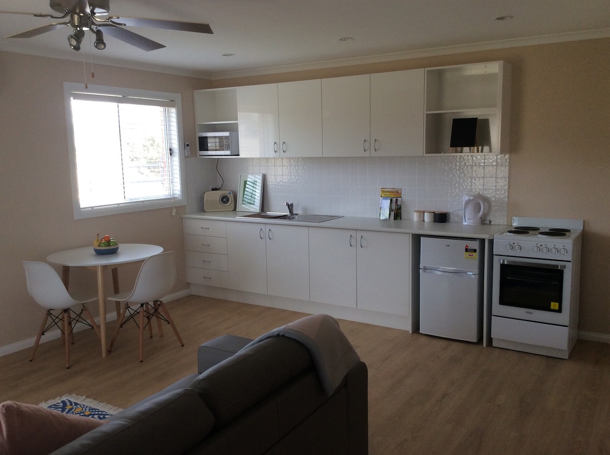 Slapp av i dette vakkert renoverte studioet, designet for komfort og stil. Med en elegant, åpen stue, kjøkken og soverom, pluss et privat bad og tilgang til vaskeri/garasje, er det ideelt for forretnings- eller helgeopphold. Plassert i en rolig Bathurst-lomme bare én km fra Mount Panorama og to km fra CBD, vil du nyte den perfekte blandingen av ro og bekvemmelighet.