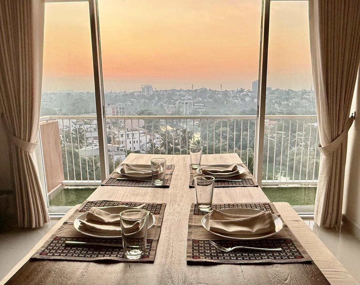 Rom Privat utsikt over stranden fra hele leiligheten med elegant interiør for å slappe av og slappe av. Inkluderer evighetsbasseng på takterrasse, yogaterrasse og treningssenter. Perfekt sted å komme seg fra travelheten eller jobbe hjemmefra med høyhastighets internett, fullt utstyrt kjøkken og luksuriøst sengetøy. Sted Bandaranaike internasjonale lufthavn (Colombo) – 19 km | 20 minutter Colombo – 14 km | 30 min Uswetakeiyawa-stranden – 950 m | 2 min Negombo Hotel Road – ti minutters kjøring Negombo-stranden – 25 km | 44 min