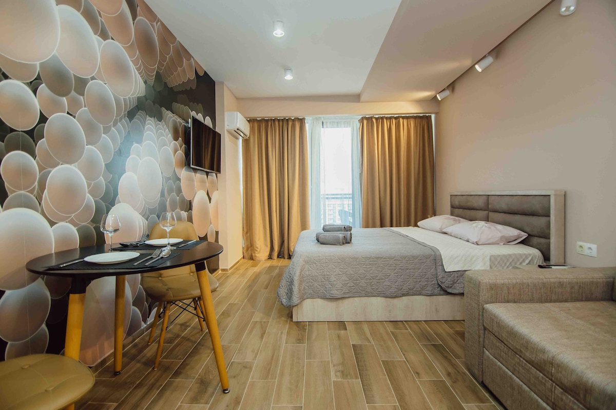 Anlegget vårt er dekorert med enkle og elegante farger. Det har alt du trenger for å bo i, og det ligger i sentrum. Vi tilbyr ikke bare utsikt mot havet, men også utsikt mot byen, innsjøen og fjellet. Samtidig har gjestene våre mulighet til å smake lokale delikatesser gratis, inkludert deilig georgisk vin, ost og dessert. Anlegget vårt er nytt, og vi har spesielle overraskelser til de første gjestene våre.