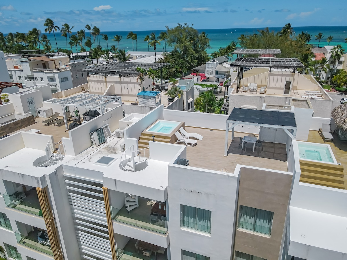 Spektakulær luksusleilighet med privat basseng på takterrassen. Et nytt konsept i Punta Cana-leiligheter som gir deg komfort, privatliv og sikkerhet på ferien. Romslige rom, fullt utstyrt kjøkken, designermøbler, trådløst nettverk med høy hastighet og innsjekking på nettet med den nyeste teknologien. Strøm er inkludert! Uten tvil en ny måte å oppleve Punta Cana på. Bare tre minutters gange fra stranden!