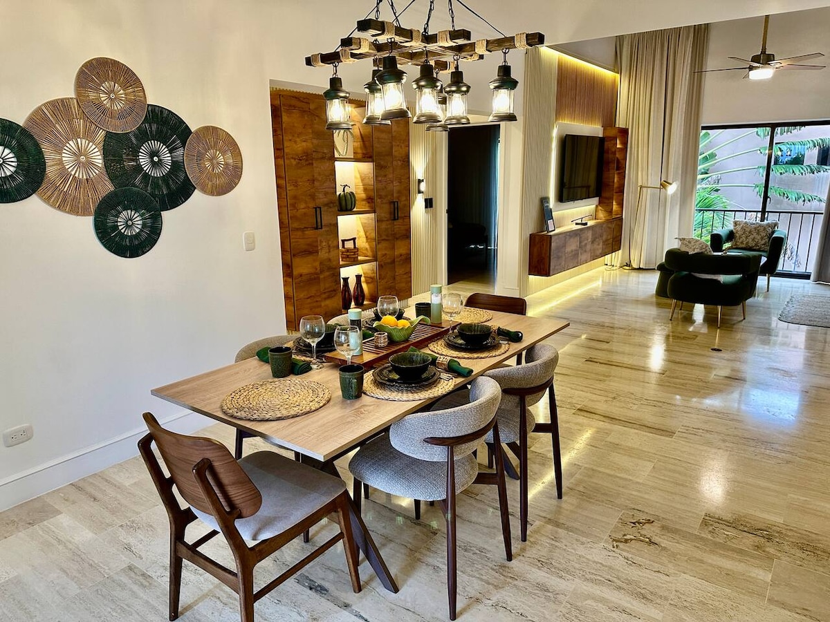 Bo Punta Cana til fulle! Nyt en moderne og stilig luksussuite i det eksklusive Punta Cana sentrum, det mest pulserende, trygge og ettertraktede området i Punta Cana Ligger åtte minutter fra stranden og tolv minutter fra flyplassen✈️. Omgitt av de beste attraksjonene, alle innenfor gangavstand: 🎉 Coco Bongo | 🎸 Hard Rock Café | 🍽️ Middag i Sky🐬 Dolphin Discovery | 🌊 Caribbean Lake Park Perfekt for et femstjerners opphold: luksus, komfort og en uslåelig beliggenhet i sentrum av Punta Cana
