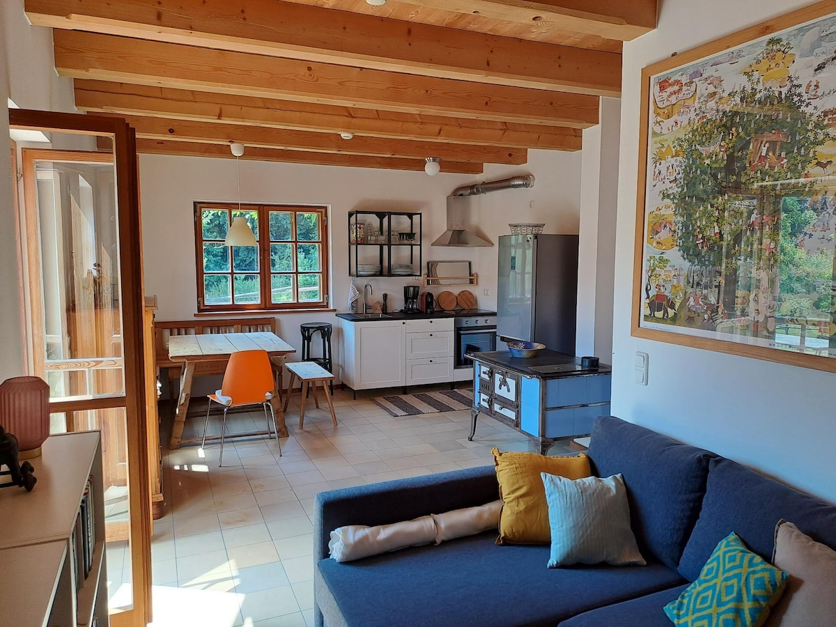 Slapp av i denne spesielle og rolige boligen. Huset ble totalrenovert i 2023. Enkeltleilighet i andre etasje med: minikjøkken, sofa som sovesofa, spise- og arbeidsbord + separat bad, møblert i høy standard og fullt utstyrt. Vaskemaskin/tørketrommel i første etasje. Rolig og landlig beliggenhet i Niederbayern nær Aldersbach. To fine sitteplasser utenfor ved bakeriet er inkludert. Kjæledyr er tillatt.