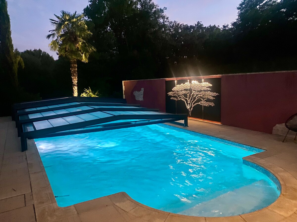 Et fredelig tilfluktssted med svømmebasseng midt på landet
