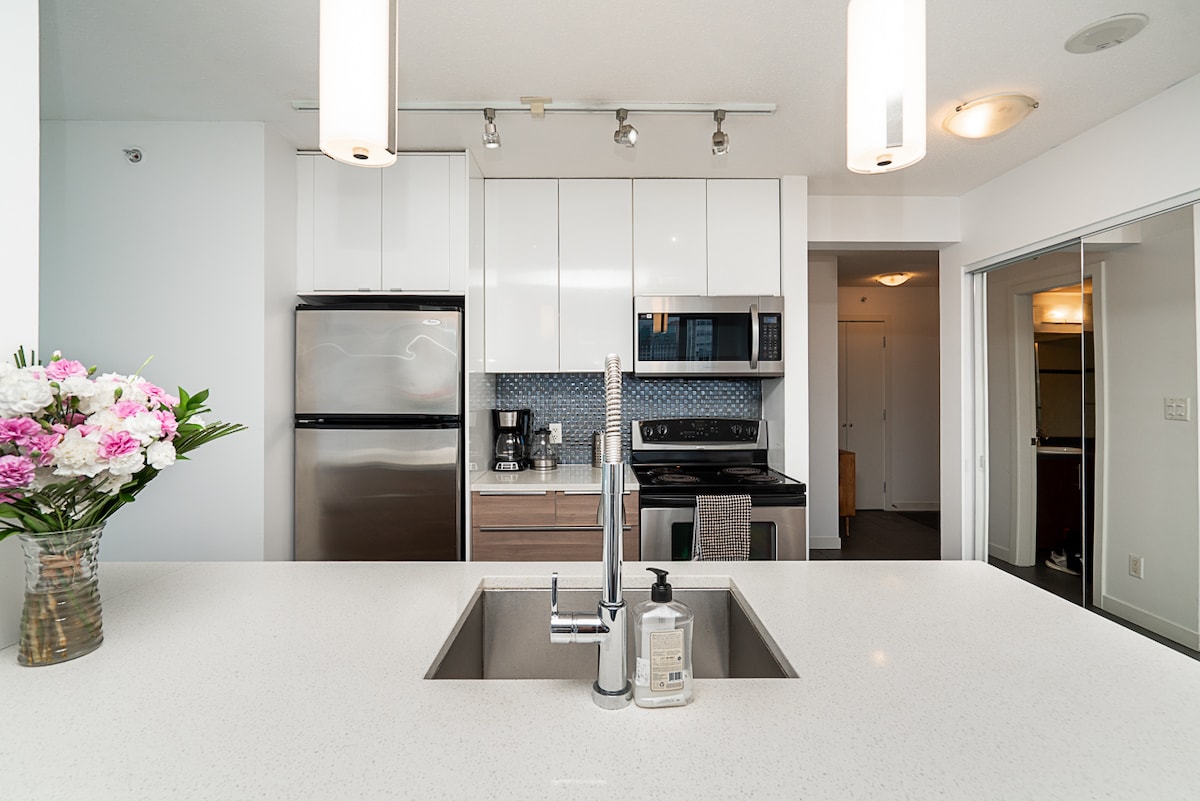 Velkommen til det nye hjemmet ditt, en luksuriøs og velutstyrt leilighet i hjertet av Vancouvers olympiske landsby, et nabolag som er bygget som et gangfellesskap for de olympiske idrettsutøvernes landsby i 2010. Én stasjon unna sentrum, to kvartaler fra Vancouvers berømte Seawall, og omgitt av fantastiske restauranter, barer og bryggerier. Du ligger også innenfor gangavstand fra Science World og mange andre attraksjoner, inkludert en seks minutters kjøretur til vakre Granville Island.