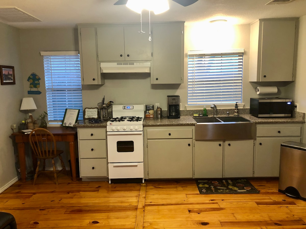 This cute cottage is conveniently located in Seabrook - halfway between Houston & Galveston. This sits on a property that is a little over a 1/2 acre. The main house is next door. The cottage is completely detached & has its own small fenced backyard. Feel like you're in the country yet just a hop & a skip to the highway. Guests love being so close to amazing restaurants, bars, live music, shops & beaches! It's a great "homebase" for your vacation or if you're traveling for work!