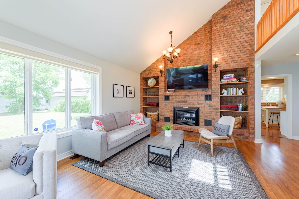 Koselig og luksuriøst hjem med tre soverom i hjertet av gamlebyen Niagara-on-the-Lake! Like bak det historiske Prince of Wales Hotel, noen skritt fra restauranter, kafeer og butikker. Herfra kan du enkelt gå til Shaw Festival Theatre, Clock Tower, Gazebo ved innsjøen, museer, parker og til og med den nærliggende golfbanen og tennisbanene. Nyt den sjeldne bekvemmeligheten av gratis parkering for opptil fire biler, og ta korte turer til verdensberømte vingårder og den fantastiske Niagara Falls.