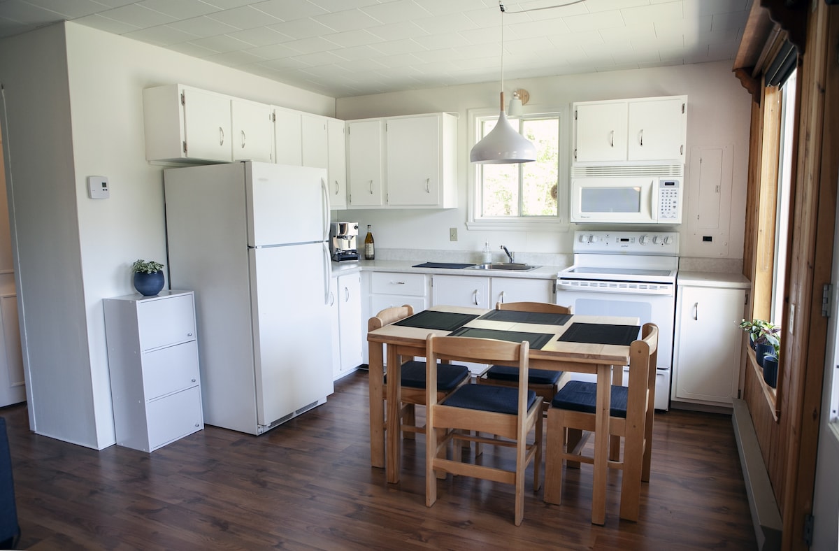 Koselig hytte nær ulike tjenester og fritidsaktiviteter med spa. Tilgang til en offentlig strand +/- 5 minutter med bil. Båtnedgang 30 sekunder unna. Kommunal park 30 sekunder fra hytta med skøytebane, basketballbane, tennis/pickleball. Flere turstier i nærområdet, både vinter og sommer. Astrolab/Mont Mégantic-stiene ligger +/- 20 minutter unna med bil. Vi ligger rett på Route des Sommets, som er et must for syklister.