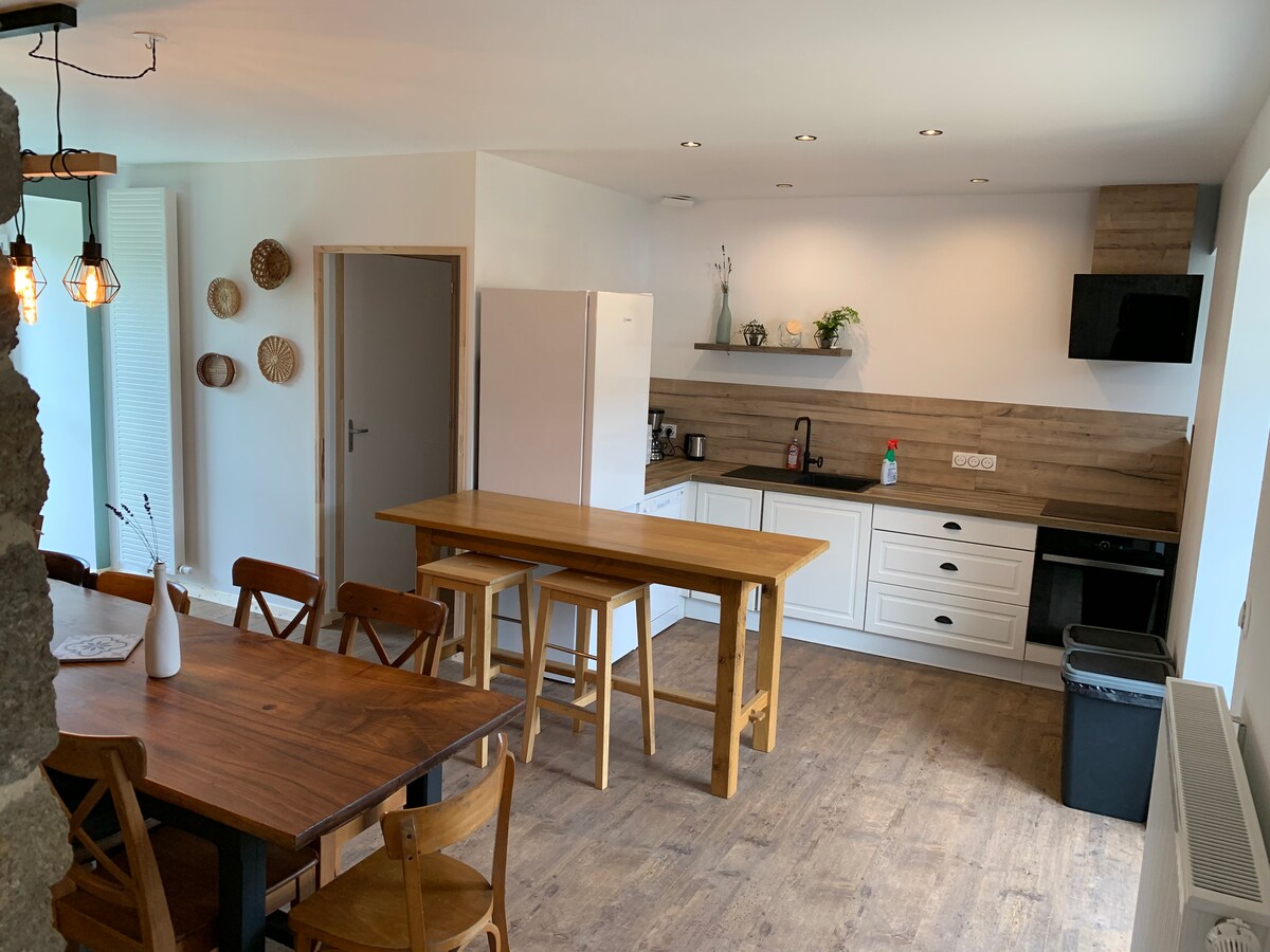 Logement confortable meublé à la ferme, très spacieux (environ 90m²) et calme au beau milieu de la Vallée de la Vire. Vous serez logé dans un grand espace confortable à la campagne, entouré d'animaux de la ferme et à 200 mètres de la Vire avec vue panoramique sur la vallée de la Vire. Base de canoé à proximité. Un lieu naturel et vallonné, pour les amoureux de la nature et des animaux. Idéal pour les randonnées à pieds, à vélo, à cheval... Possibilité d'accueillir deux chevaux sur prairie.