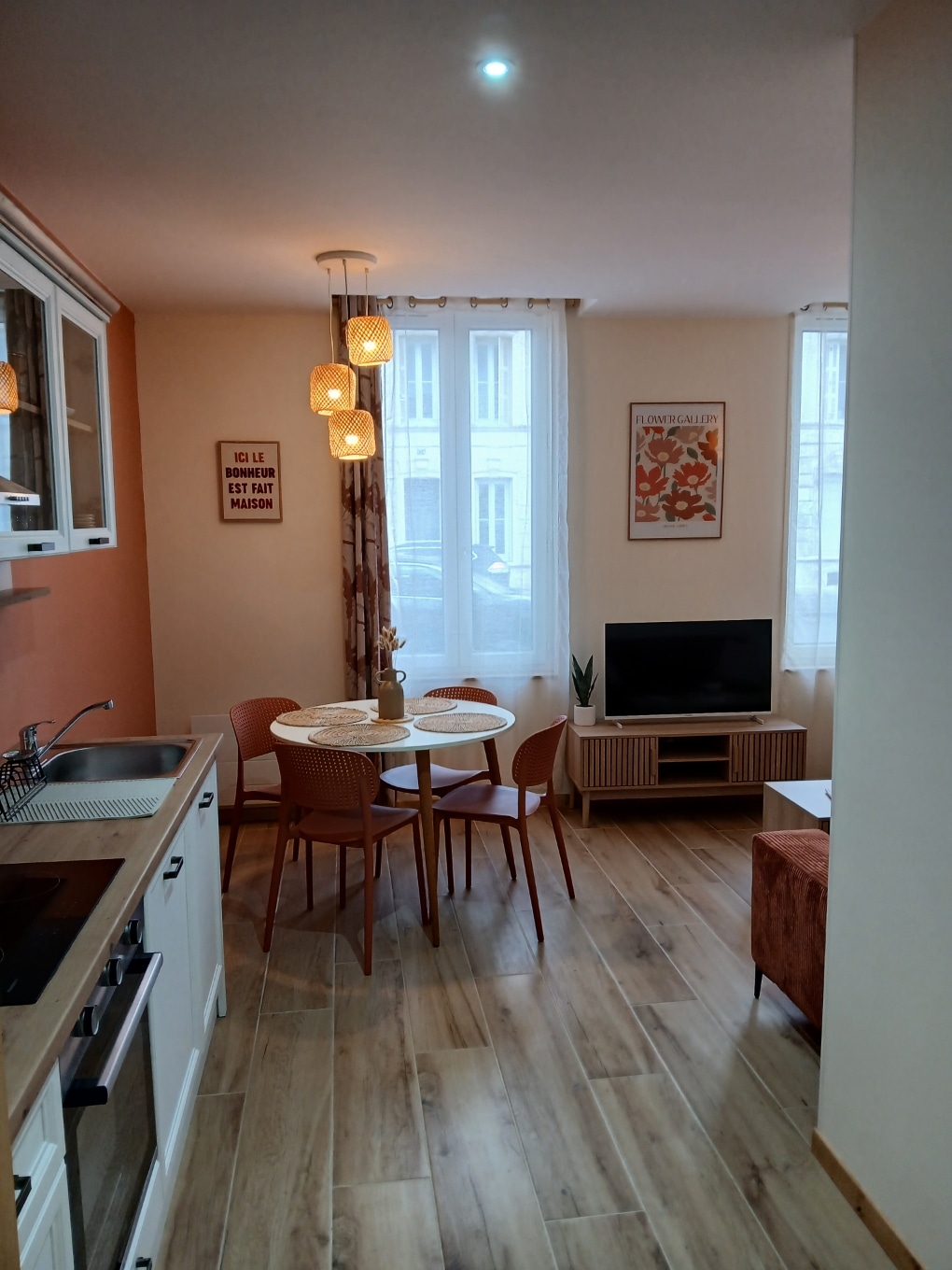 Entièrement rénové avec des matériaux de standing, notre studio de 24 m2 situé au 2ème étage, est officiellement classé 3 étoiles meublé de tourisme. Situé en hyper centre de Rochefort, à 2 minutes à pieds du port de plaisance et de la Corderie Royale et à 200 m des thermes. Cuisine entièrement équipée avec lave-vaisselle, plaques à induction, four micro-ondes grill, Nespresso, grille-pain, bouilloire et frigo avec congélateur. Wifi très haut débit gratuit et TV grand écran avec Netflix.