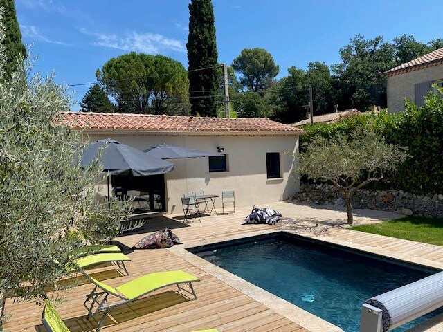 "La Maison aux Oliviers" er en liten sjarmerende gård på 90m2, med aircondition, uavhengig og ligger på en gammel olivenlund, i en rolig anlagt hage med et vakkert oppvarmet og sikkert privat basseng. Den store markisen gir mulighet til å oppholde seg ute, beskyttet mot sol og vind (mistral). I nærheten av det historiske sentrum, det lokale markedet og butikkene (til fots), er det perfekt utstyrt for fjernarbeid (høyhastighetsfiber)
