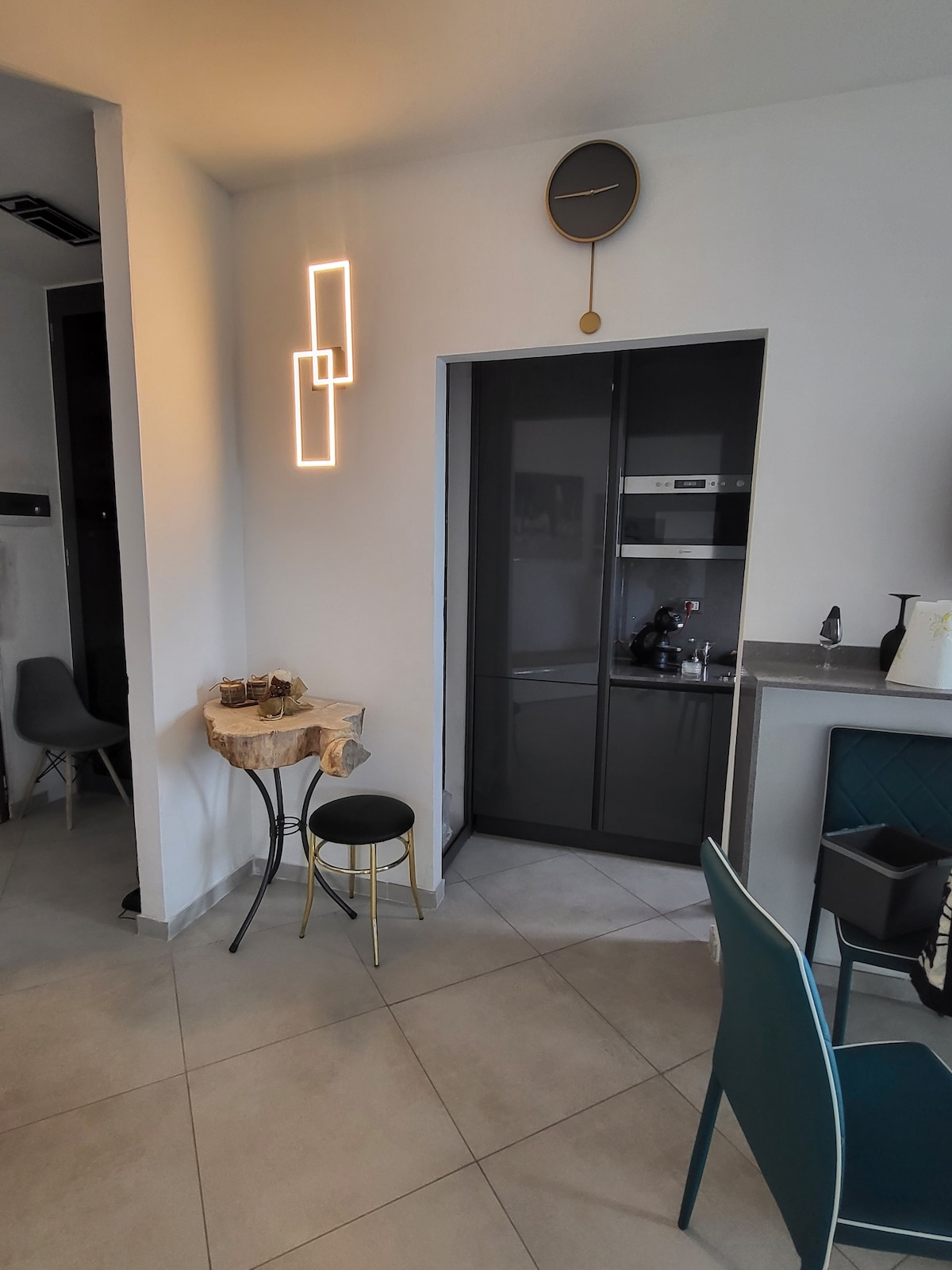 minileilighet med egen inngang bestående av et soverom med dobbeltseng, et rom med en sovesofa med dobbeltseng og tekjøkken og et privat bad med en komfortabel dusj. Leiligheten ligger ved siden av vertshuset. Er velkomne små og mellomstore kjæledyr. Web har 2 hunder og 1 katt.