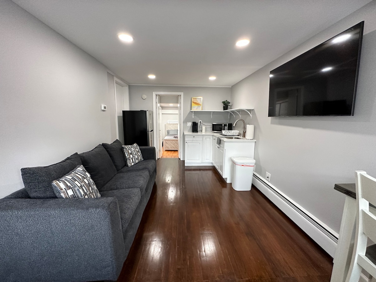Stedet Privat leilighet med ett soverom og moderne innredning tilbyr alt du trenger for et kort eller langt opphold. Stedet har en egen stue/spiseplass og kunst inspirert av New York City. Soverommet tilbyr en queensize-seng, skrivebord, 40 tommers Roku Smart TV og rikelig med skapplass. Beliggenheten En halv mile fra I-95 og i nærheten av Merritt Parkway, South Norwalk togstasjon, South Norwalk sentrum og en halv mile unna Norwalk Hospital. Minutter fra kjøpesentre og dagligvarebutikker.