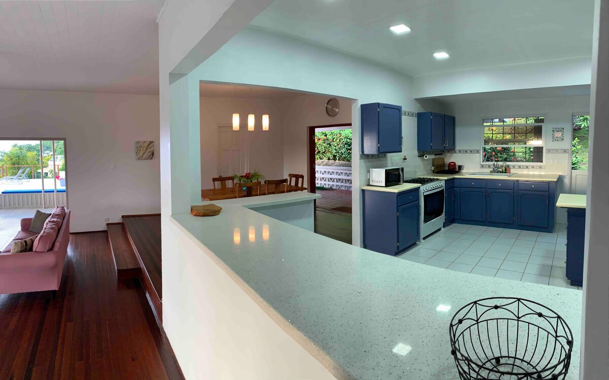 Eiendommen har åpen planløsning. Familierommet er en direkte utvidelse av det fullt fungerende kjøkkenet. Huset har to soverom og to bad. Hovedsoverommet er utstyrt med ensuite. Hjemmet inkluderer også et underjordisk svømmebasseng og flott utsikt over fjellet! Det er rikelig med plass utenfor stuen for å nyte det varme klimaet! Nærhet til den nest største byen på øya. En kort kjøretur fra Grand Etang Lake og Forest Reserve.