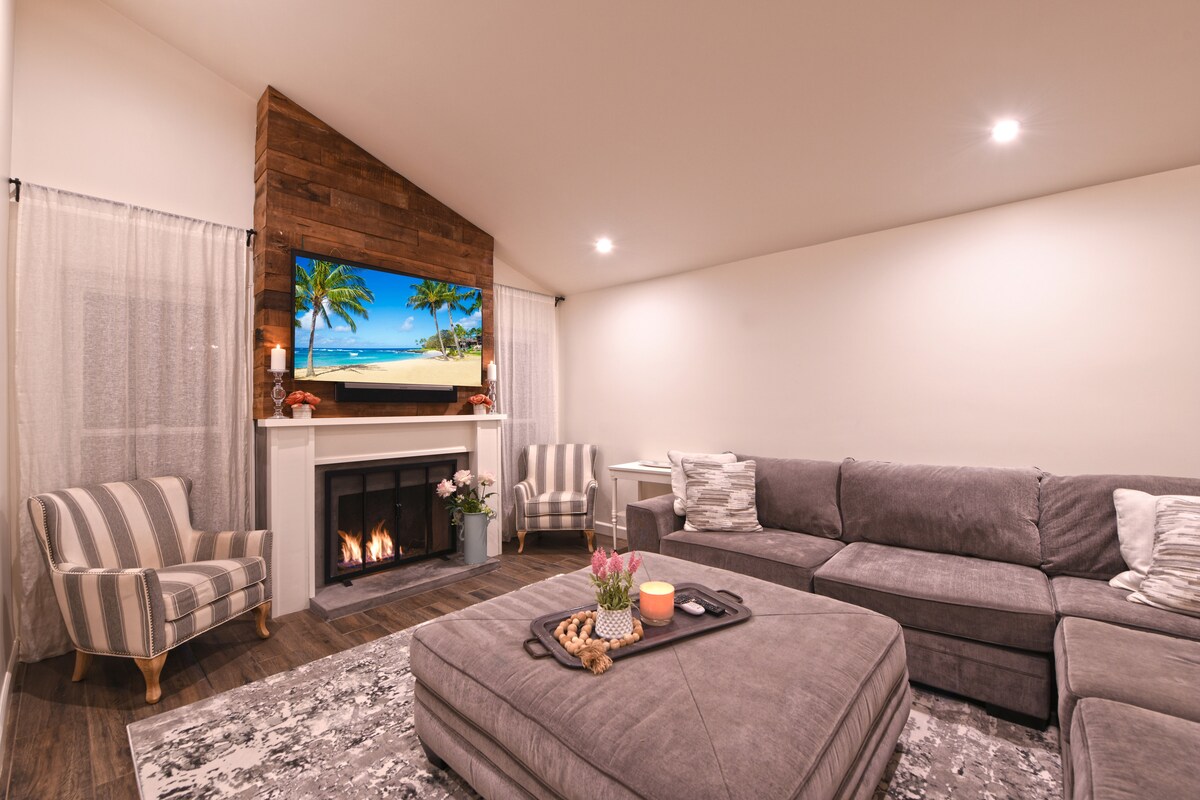Kunstfylt fristed med unike gjenstander, en frodig hage med livlige planter og vegetasjon, en liten dam, privat basseng og spa, bålplass og utekjøkken. Slapp av i en rolig blindvei med to skyggefulle uteplasser, moderne underholdning, inkludert strømme-TV-er, surroundlyd, et lite biljardbord og en Xbox. Perfekt for familier, venner, par eller forretningsreisende som ønsker komfort, privatliv og et minneverdig opphold i Sør-California i nærheten av Disneyland og de viktigste attraksjonene.