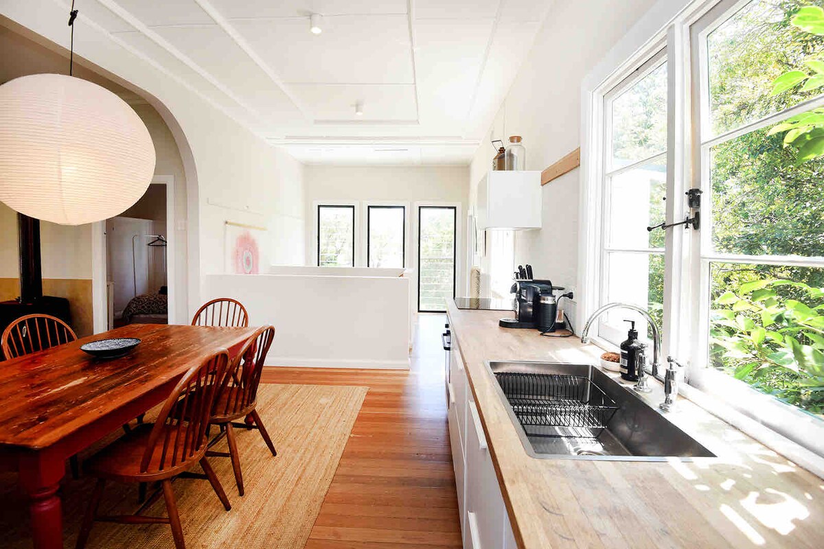 Rainbow Creek ble kuratert for elskere og eventyrere. Beliggende i utkanten av regnskogen i Kalang, er du omgitt av naturen – fuglesang, glødormer og en million stjerner om natten. Nyt luksuriøse, komfortable rom for å hvile, eller vær kreativ i biblioteket med kunstutstyr, eller les våre natur- og kunstbøker i biblioteket. Vi er langt nok fra Bellingen til å føle at du virkelig har rømt, men nær nok til å gå ut for en romantisk middag eller en avslappet frokost og kaffe om morgenen.