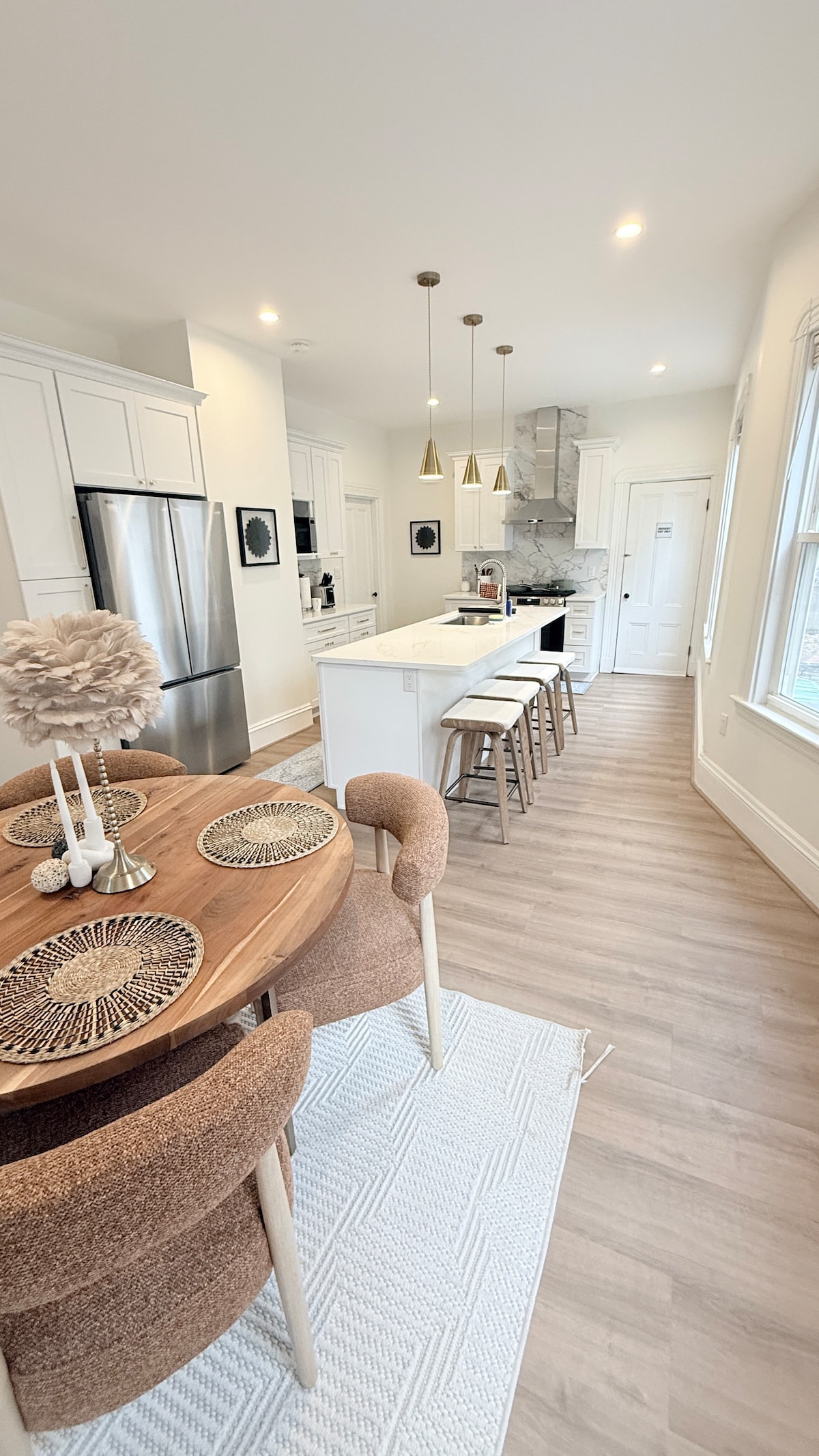 Nyt en stilig opplevelse i denne nylig renoverte, moderne leiligheten med tre soverom. Sentralt plassert, moderne, lys og ligger i en historisk Boston-forstad på en rolig, privat vei med rikelig med gratis parkering utenfor gaten og gangavstand til sentrum, elvevandring, sykkelstier og hundepark.