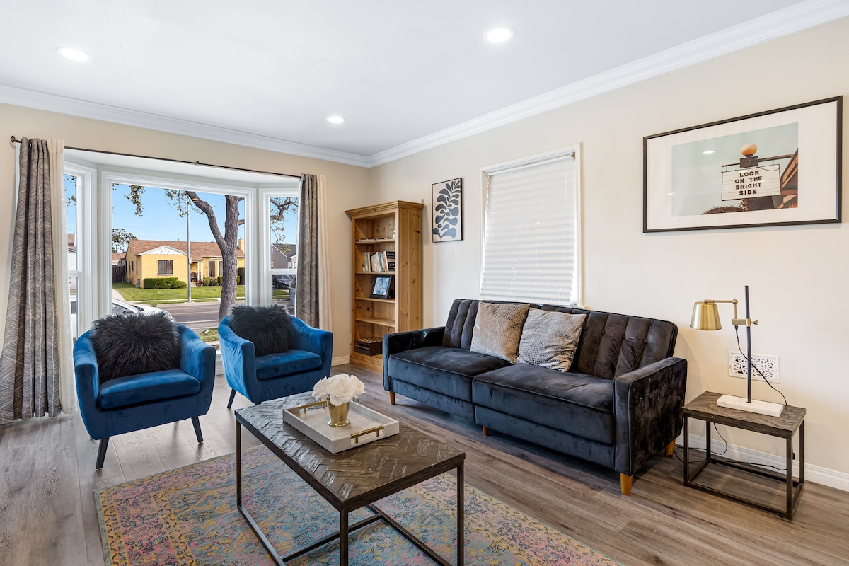 Velkommen til ditt stilige tilfluktssted i Long Beach! Nyt denne vakkert designede eiendommen som ligger mindre enn en mile fra stranden og nær sentrum av Long Beach og Belmont Shore. Hjemmet er ideelt for familier, venner eller jobbreisende, og tilbyr komfort, bekvemmelighet og stil. Tre soverom og 2,5 bad: Opptil åtte sengeplasser med to kingsize-senger og mer. Eget kontorområde: Ideelt for hjemmekontor. Boksegym: fullt utstyrt for trening. Terrasse: komfortable sitteplasser utendørs. Vaskerom.