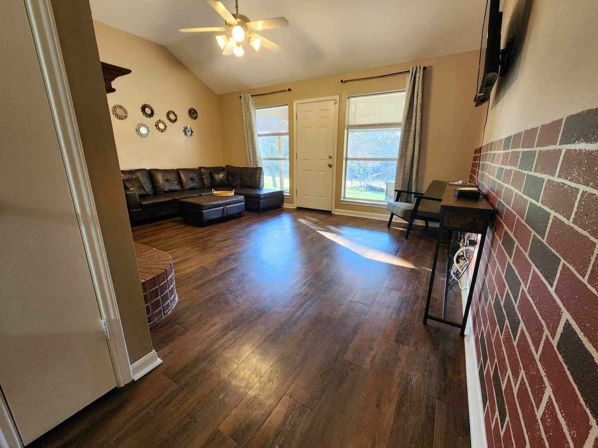 Bring the family to this peaceful place near the lake with lots of room for fun and relaxation. With a large family room, games and nearby lake access to fish or hang out by the water, there is plenty to do to keep the family entertained. The large family room has a big screen tv, bunk beds and a deck right outside to enjoy the beautiful sunset. Come relax in this quiet, calm and family friendly place. Very quiet neighborhood.