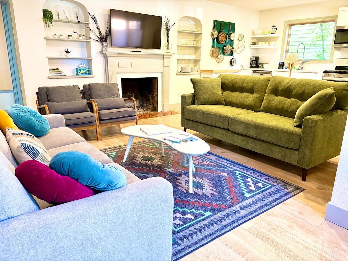Denne 600 kvadratmeter store, lunefulle leiligheten ligger i et av Bends beste nabolag, River West – bare 14 minutters gange til sentrum (0,6 miles). Beliggenheten er også nær elven, Drake Park, samt mange restauranter, kafeer og gallerier. Det passer perfekt for par eller enkeltpersoner som leter etter en koselig, tilbaketrukket atmosfære i en hytte. Garden Apartment har mange fasiliteter, inkludert gratis parkering, klimaanlegg, stort badekar med løveføtter, vaskemaskin/tørketrommel, gasspeis, HBO, kabel-TV og kaffe.