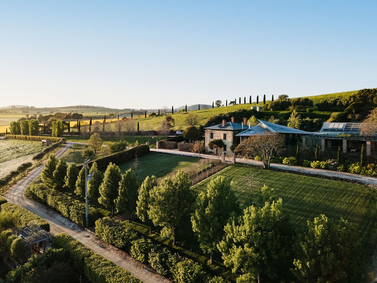 Spis under klatrevinstokker under stjernene. Eksteriøret er kledd med bølgete jern, tømmer og vinduer fra gulv til tak. Den nordvendte siden har en stor utendørs terrasse, et lite soloppvarmet basseng med utsikt nedover dalen til Mt. Franklin. Eiendommen ligger på 6 hektar og ligger 10 minutters kjøretur fra Daylesford, hjem til spa for avslapping og sesongbaserte herligheter å prøve. Det er rikelig med muligheter for vinsmaking på en rekke lokale vingårder og spisesteder på landsbyrestauranter.