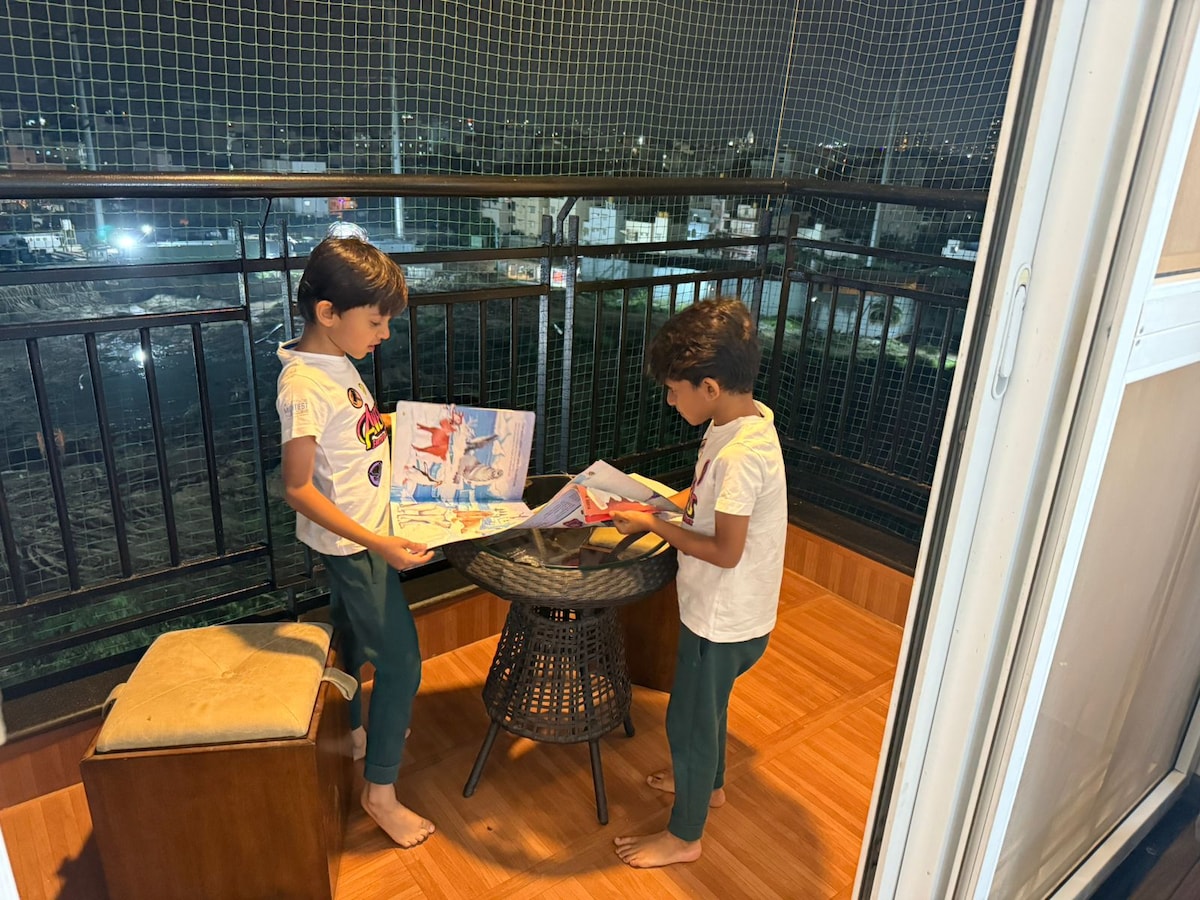Velkommen til leiligheten vår ved sjøen! Opplev moderne komfort i Bangalores rolige omgivelser. Slapp av i den koselige 2 BHK-leiligheten vår med klimaanlegg (på ett soverom). Nyt sømløs strømming med trådløst nettverk på 100 MBps. Nyt bekvemmeligheten av gratis parkering inne på eiendommen, noe som gjør pendlingen uanstrengt. Nyt gratis te og kaffe, og hvil deg på førsteklasses madrasser med kvalitetssengetøy. Sjampo og dusjsåpe er tilgjengelig for et bekymringsfritt opphold. Nyt komfort og bekvemmelighet på sitt beste!