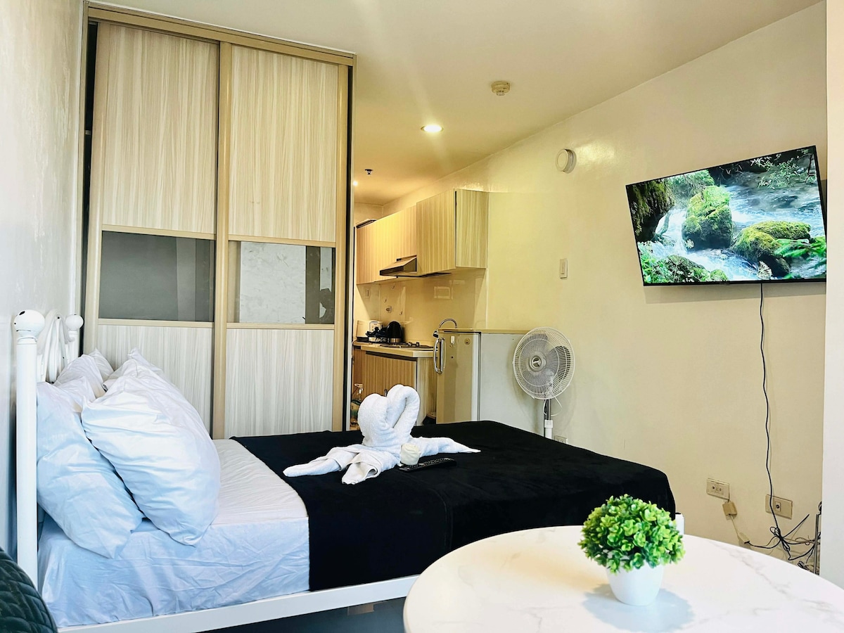 BELIGGENHET: MegaTower Residences IV, Upper Gen Luna, Salud Mitra, Baguio City (noen meter unna Session Road og SM City Baguio). ENHETENS FUNKSJONER: ▫️TRÅDLØST NETTVERK ▫️Smart-TV med Netflix. Senger og sengetøy i▫️ hotellstil. ▫️Både bade- og håndklær. ▫️høyhastighetskjøler ▫️Kjøleskap ▫️Mikrobølgeovn ▫️riskoker ▫️vannvarmer ▫️kjøkkenutstyr ▫️Tøfler ▫️varm og kald dusj ▫️hårføner ▫️dusjsåpe, sjampo og balsam ▫️Toalettpapir