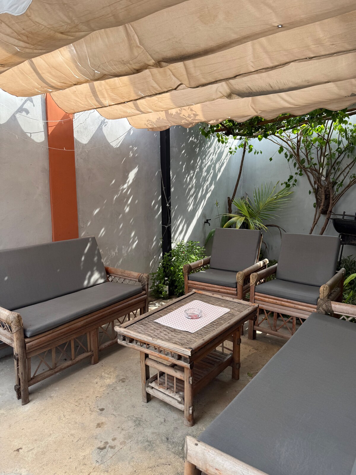 Velkommen til Homey, Gjør livet ditt enklere i denne fredelige, sentrale og komfortable boligen, ideelt plassert for å oppdage Ouidah og dens kulturelle rikdom. Nyt et vakkert, lyst rom, plassert i grønne omgivelser med en privat hage, perfekt for å slappe av etter en dag med oppdagelser. Denne lille oasen av grøntområder i sentrum har noen overraskelser i vente: Med litt oppmerksomhet kan du se de praktfulle ekornene som har bosatt seg der. Nyt oppholdet ditt!