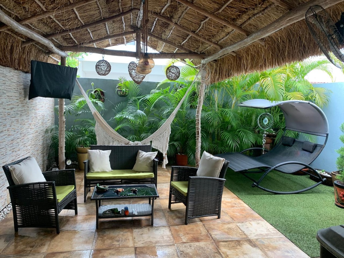 Dette stedet har en strategisk beliggenhet: Det er veldig komfortabelt og med fin karibisk innredning, noen minutters gange fra fergen til Isla Mujeres. Vi ligger i sentrum av Cancun, og nabolaget er veldig rolig. Det er to soverom, hvert med dobbeltseng for 1 eller 2 personer, SmartTV og komplett bad, stue med Smart TV, Netflix og Wi-Fi, spisestue, utstyrt kjøkken, hage i bakgården og område for vask. Du kan nyte de kjølige nettene i hagestuen. Plass til å parkere bilen din.
