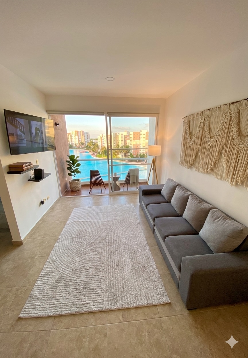 La deg forføre av den varme og moderne innredningen som Dream Lagoons tilbyr, områder som får deg til å føle deg som hjemme. Nyt den vakre utsikten over den enorme lagunen på 1,8 hektar, 7 bassenger, løpebane rundt lagunen, palapaer og lekeplasser. Unike fasiliteter som vil gi deg glede med hele familien, alt på ett sted Leiligheten har sikkerhet 24 timer i døgnet. 5 minutter å gå finner du bensinstasjon, bakeri, Starbucks, supermarked, bank.