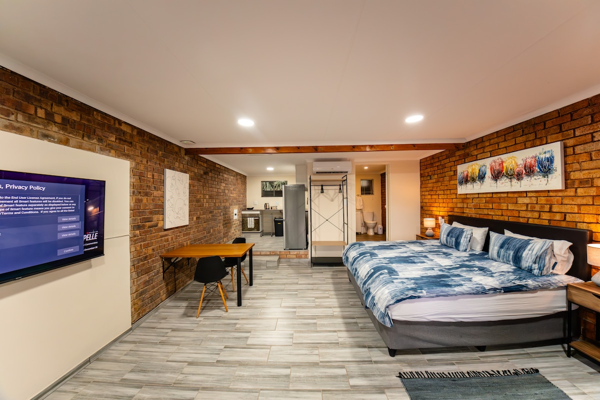 Fullt møblert moderne, selvbetjent, sikker og fullt utstyrt privat studioleilighet, med solenergi, slik at du ikke blir påvirket av strømbrudd! Plassert i et rolig, trygt nabolag i nærheten av alle store kjøpesentre og underholdningsområder. Stedet er trygt, rolig og stilig, nylig renovert og perfekt for forretningsfolk eller reisende par. Vær oppmerksom på at det er strengt forbudt å røyke i denne leiligheten. Det er veldig vennlige hunder på eiendommen som elsker å hilse på gjester ved ankomst.