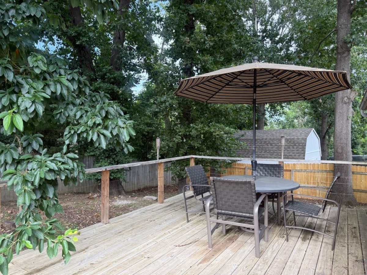 Nybygg. Riding distance to back 40 trail. Vakkert hjem med to soverom og to bad. Hovedsoverommet har kingsize-seng. Soverom nr. 2 har to enkeltsenger. Denne eiendommen har også en uttrekkbar seng, så den kan sove fem personer totalt. Dette huset har et stort øvre dekk med mange sitteplasser, hengekøye, pelletsgrill (sjekk lokale forbrenningsforbud før bruk) og boblebad. Det er også et lavere grusområde med flere sitteplasser og en bålplass. Garasjen er et spillrom med dart, shuffleboard, ringkast, pingpongbord og lar.