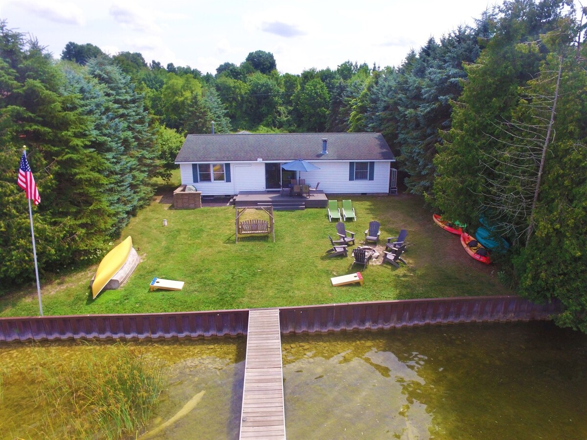 Dette stedet er et vinter- og sommerland. Hytta vår er i en liten 50-tallsstil med mye karakter, bortgjemt i skogen. Vi er omgitt av Sleeping Bear Dunes på 70 000 hektar. Det er rikelig med skigåing, kanopadling, turgåing og fiske, fred og ro. Vi er på grensen til Benzie og Leelanau fylker, de beste vinregionene på denne siden av Mississippi og en ekte håndverksmatdestinasjon. Det er en kort kjøretur til Honor, Empire eller Glen Arbor. Traverse City ligger 25 miles øst.