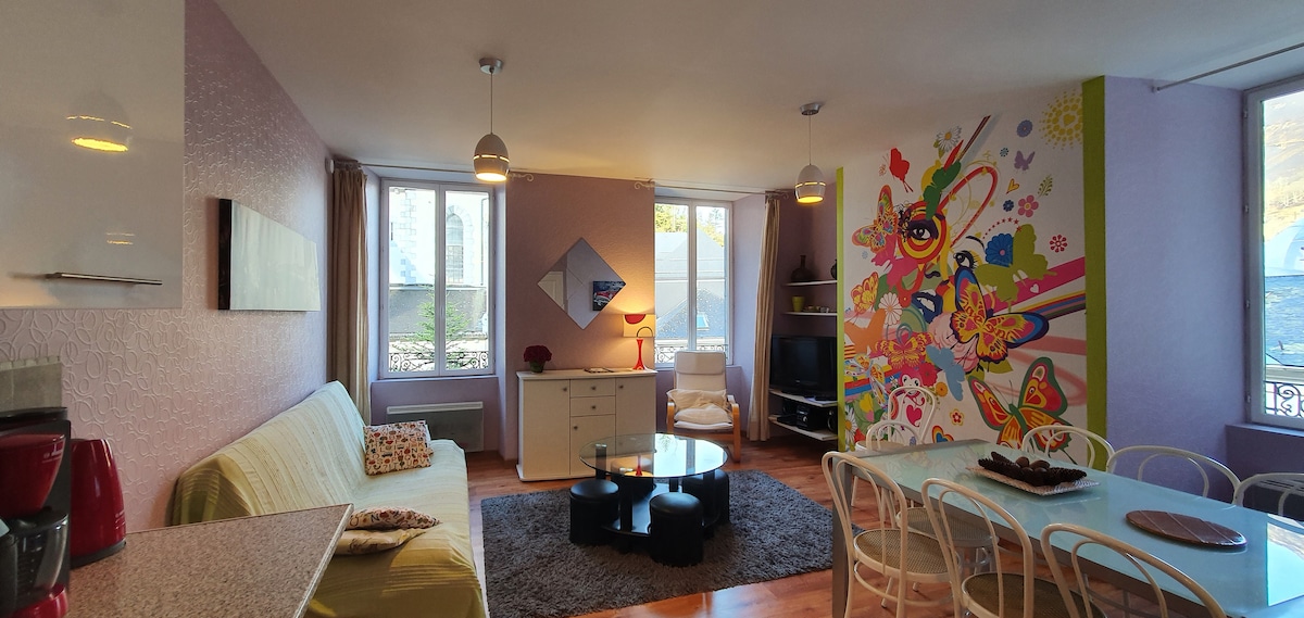 Kom og oppdag sjarmen til denne rolige og koselige studioleiligheten, smakfullt renovert i en moderne og komfortabel atmosfære. Den nye sovesofaen blir byttet ut i september 2025. Den fantastiske utsikten over fjellet og lyden av vannet vil gjøre oppholdet ditt enda bedre. Overnattingen ligger i sentrum av Les Eaux-Bonnes, Rue de la Cascade, en kort spasertur fra skyttelpassasjen som tar deg på ski om vinteren. 😀