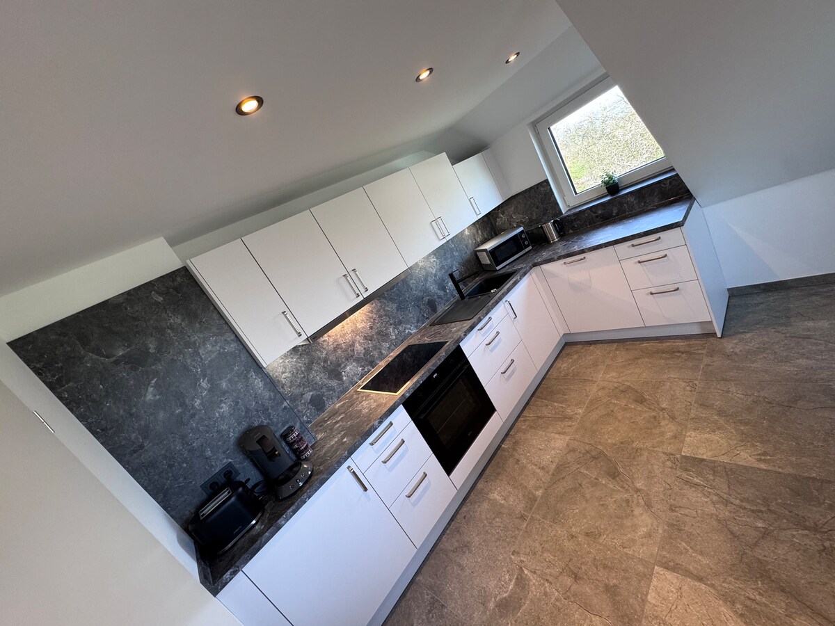 Moderne, großzügige Ferienwohnung für bis zu 4 Personen mit hochwertiger ausgestatteter Küche - ideal zum Selbstkochen. Die Ferienwohnung bietet den perfekten Rückzugsort für entspannte Tage – ideal, um nach ausgedehnten Wanderungen zur Ruhe zu kommen. Die Wohnung verfügt über ein komfortables Kingsize-Bett sowie eine Schlafcouch. Ideal für Paare, Familien oder Freundesgruppen - modern, gemütlich und unkompliziert für eure Auszeit in der Eifel.