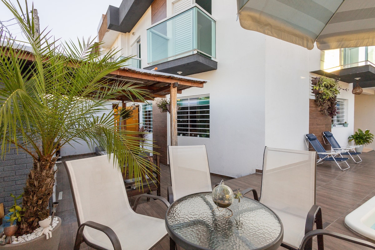 Komplett leilighet med gourmetbalkong 50 meter fra stranden