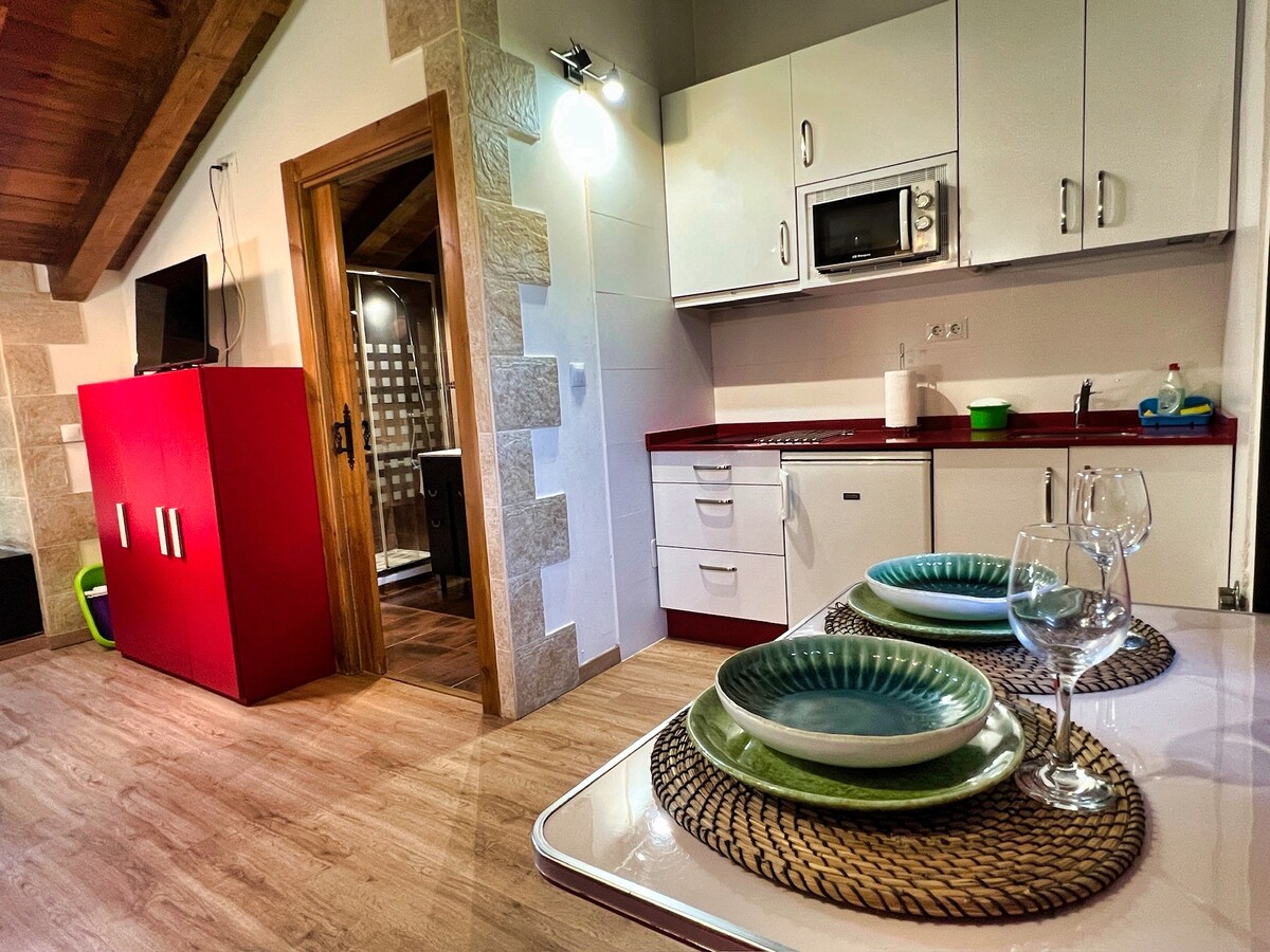 Fullt OPPUSSET STUDIO i et lite landlig kompleks ved foten av PICOS DE EUROPA, LA FRAGUA landlig bolig. Romantisk studio i perfekt harmoni mellom funksjonelt design og komfort. Nyt varmen fra solnedgangen fra terrassen, med vakker utsikt over Picos de Europa. Utstyrt med sengetøy, håndklær, kjøkkenutstyr, vaskemaskin, kjøleskap, kaffetrakter, tørketrommel og terrassemøbler. FELLESOMRÅDER: SOLARIUM – LEKEPLASS – GRILL – SNACKBARER
